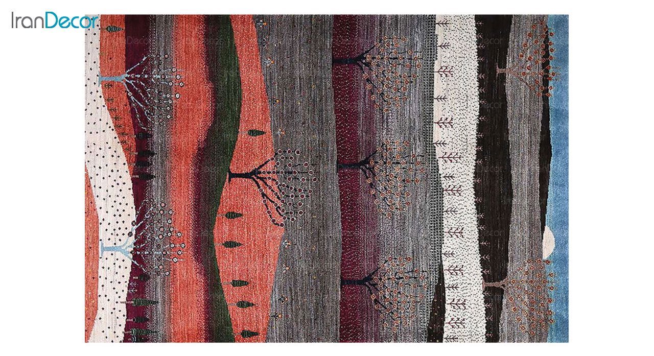 «فرش ماشینی طرح پتینه کرامتیان مدل 5985» با طرح پتینه به سبک مدرن بافتهشده که عناصر طبیعی آسمان، تپههای رنگارنگ رویهم، درختان خشکیده و غروب خورشید در آن مشاهده میشود. این فرش دارای رنگهای خنثی و گرم مشکی، خاکستری، سفید، نارنجی و آبی از نخ ابریشم درجهیک بسیار ظریف بافتهشده است که بیشتر برای دکوراسیون به سبک مدرن مناسب میباشد.