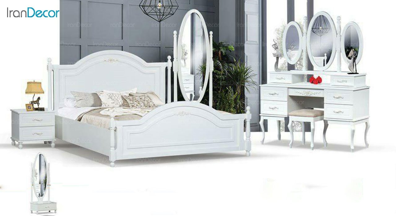 تخت خواب این سرویس با طول 200 سانتیمتر و عرض 160 سانتیمتر دارای یک کفی جکدار است که امکان تعبیه جک، کشو و باکس در زیر تخت فراهمشده است. «سرویس خواب دو نفره مادرین مدل آدینا» از محصولات باکیفیت ایرانی میباشد که گارانتی معتبر مادرین به آن تعلق میگیرد و شما میتوانید آن را در ابعاد و رنگ موردپسند خود سفارش دهید و اتاق خوابی ایدهآل خلق کنید. فروشگاه اینترنتی ایران دکور امکان سفارش این سرویس خواب بزرگسال شیک و ساده را با رنگ سفید پوششی مناسب جهیزیه عروس همراه با گارانتی معتبر شرکتی برند مادرین وود برای شما فراهم نموده است.