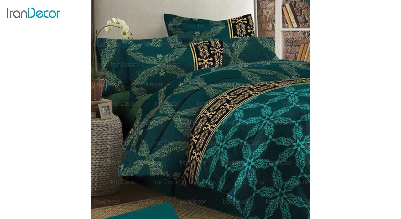 دو نفره: لحاف رو تختی، ملحفه کشدوز تشک، 4 عدد رویه بالش، 2 عدد کاور کوسن
