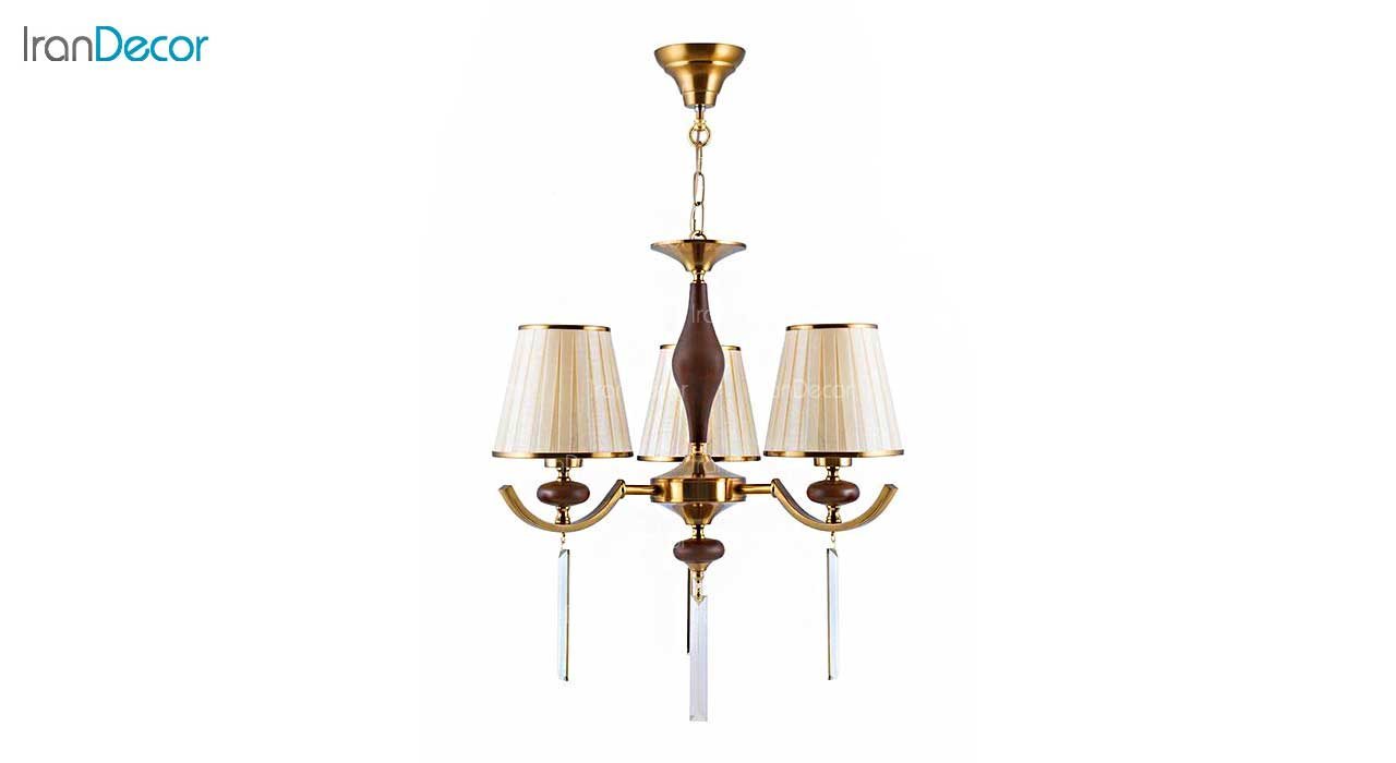 جنس بدنه این لوستر سه شاخه، ترکیب فلز آبکاری شده با تزیینات چوبی از جنس چوب راش است و جنس کلاهک آن نیز از حریر مرغوب می باشد، که به راحتی قابل شستشو است و دوام بالایی دارد.